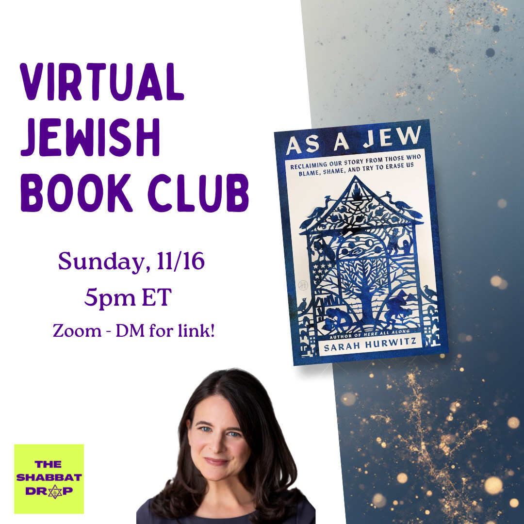 P.S. Shabbat Drop Book Club got moved to 11/16 so you have more time to read As a Jew by Sarah Hurwitz! Don’t miss our virtual hang!