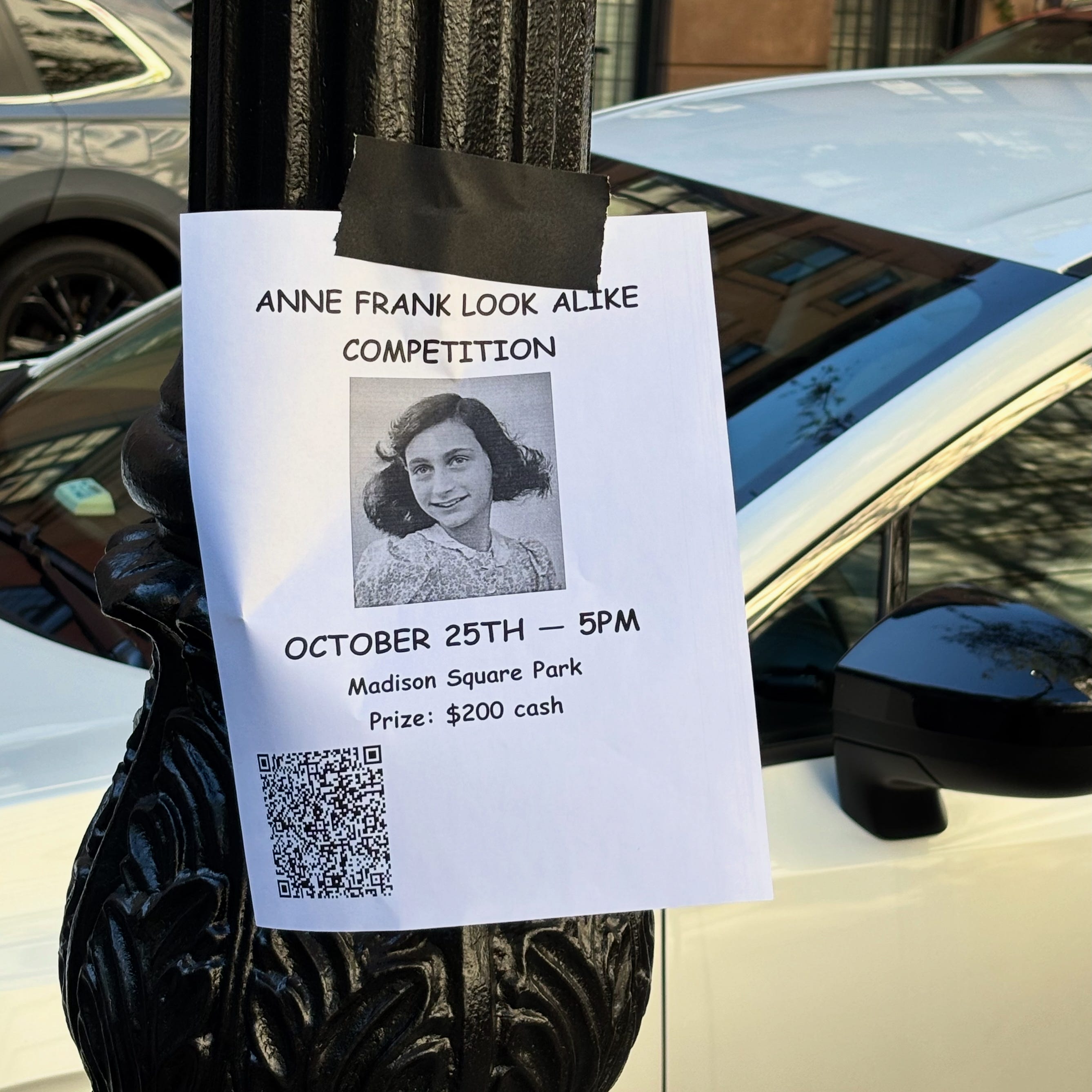 That’s why I almost overlooked this one, until the photo on the flyer stopped me in my tracks. An Anne Frank lookalike contest? Did Anne Frank belong in the same comedic or heartthrobic (I just made up that word) bucket as Timothée and Pedro? Not that I think Timothée is a heartthrob, but still. I was exasperated.