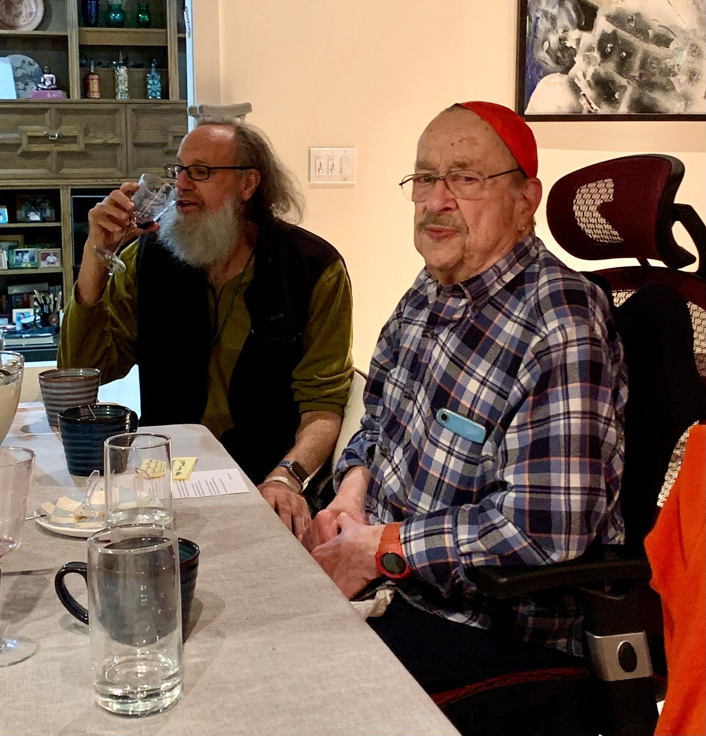 And, for your enjoyment, here’s Fred (my dad) at the seder wearing his kippah that makes him look like the Pope with cousin Mike. Can you believe you get this kind of content for free?!