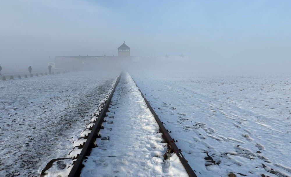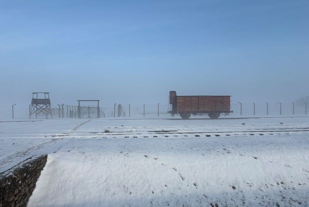 The day we went to Auschwitz it was very foggy, wintry, with snow on the ground. All the stories I had heard about it growing up from survivors were coursing through my mind, particularly the first story I had ever heard about it from my elementary school librarian Mrs. Bodenheim. Right after the tour, I went into the bookstore with the rabbi and bought Rudolf Höess’ autobiography, the camp Commandant, and several other books. It was as though I didn’t know what else to do than buy these books. And the second we walked out of the store I just broke down crying with an abandon I have rarely ever felt. You learn so much about this place, and being there has this indescribable realistic surrealness. It’s here, I’m here, they were all here.