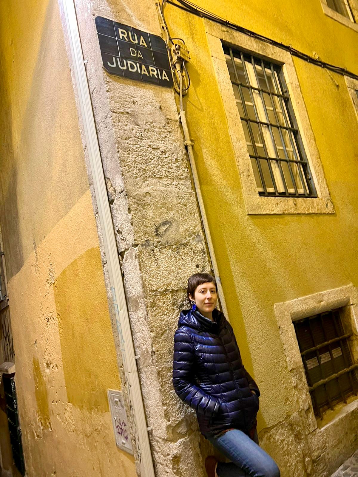 Here is a photo of me from last year in Lisbon when I accidentally stumbled upon the Jewish street in Alfama, one of the four Jewish quarters built in Lisbon, around 1373.