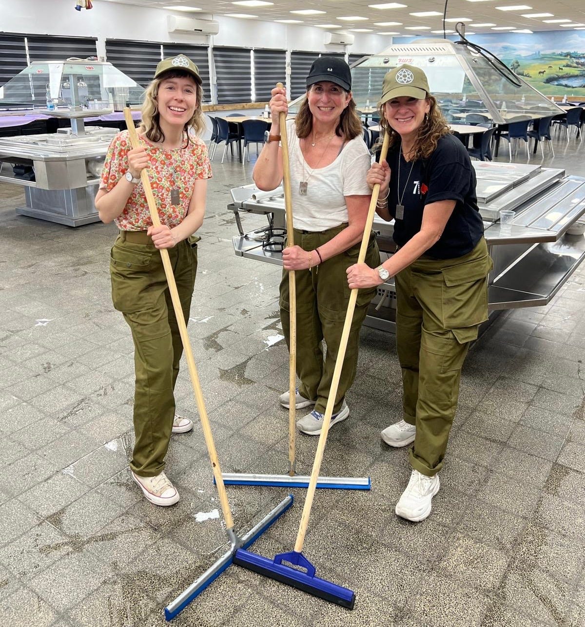 An example: When cleaning the dining hall, I asked a soldier where a stack of paper plates should go, and I could tell he was searching for the English word for “closet” but couldn’t quite find it. I looked at the two closets nearby and asked in Hebrew, “Smol o yamim?” (left or right?). His face lit up with a surprised smile. “Yamim!” he said, beaming. Who knew that a brief exchange—half in English, half in Hebrew—about paper plates and closets would mean so much?